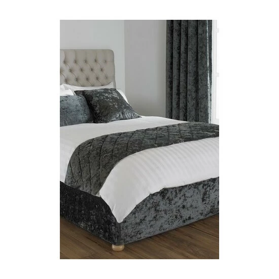 Add flair to your otherwise humdrum bed spread with the Verona crushed velvet-look runner. The shimmer and shine velvet-look fabric boasts quilted detailing to one side with a plain, colour-matched reverse adding a touch of opulence to your home. Velvet has been picked as the statement fabric of choice for home interiors this year. Plush and regal the construction of the fabric allows it to catch and reflect light giving it a shimmering appearance. Velvet products have intensely rich colours and suit funkier, nontraditional spaces. Velvet is thick giving it room darkening properties along with an insulation barrier. Made from 100% polyester the Verona bed runner is easier to care for than real velvet as it is wrinkle and fade resistant. Designed in the UK by Riva Home leading soft furnishings suppliers since 1973.