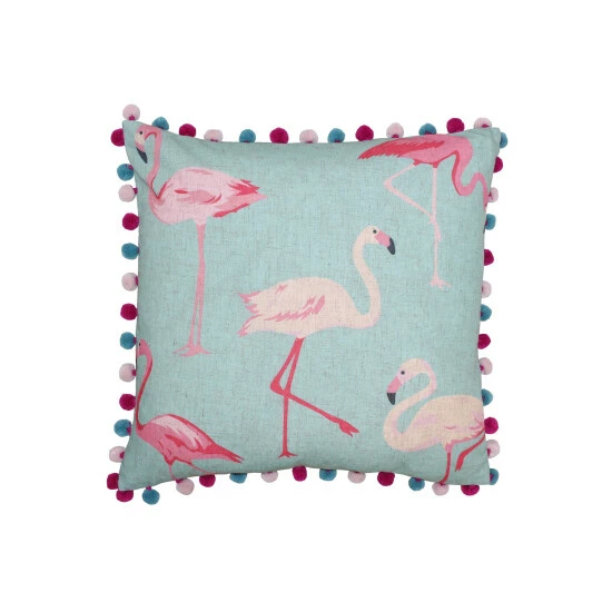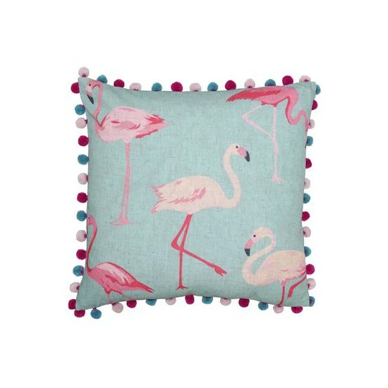 The Paoletti Flamingo cushion is a delightfully playful addition to any home. Featuring a pastel colourway of blues and pinks, it’ll brighten and lift your room while transporting you to a palm shaded lagoon. A gorgeous flamingo design is printed on linen giving this cushion cover a uniquely rustic vibe. Complete with multicoloured pompom edges in baby pink, blue and hot pink simply adds to the cushions whimsical nature.