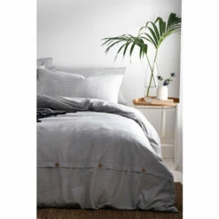 Features an elegant mélange stripe design to add a textured appearance. Complete with a wooden button trim detail. Made from 100% cotton and a 144 thread count, this duvet set is extremely comfortable and cosy.