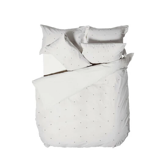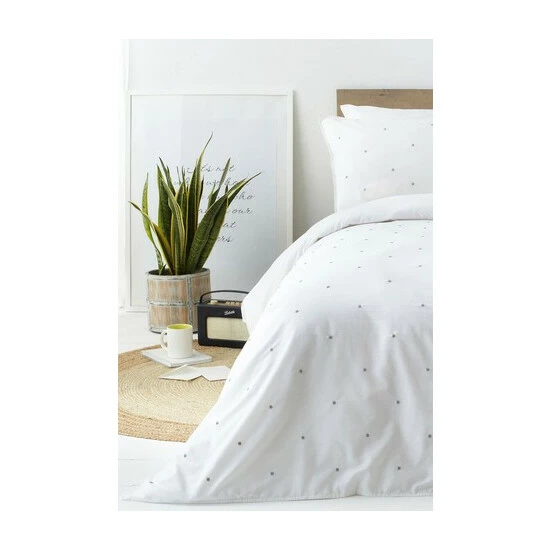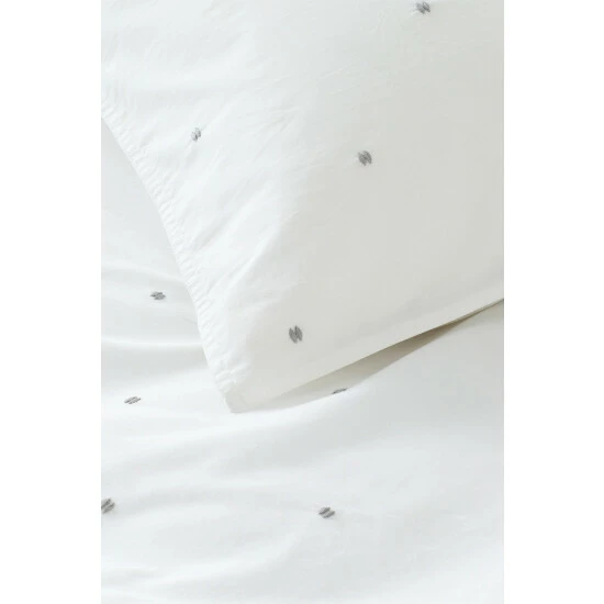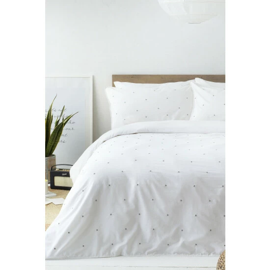 Riva Home The Linen Yard White Strand Washed Cotton Embroidered Duvet Cover And Pillowcase Set